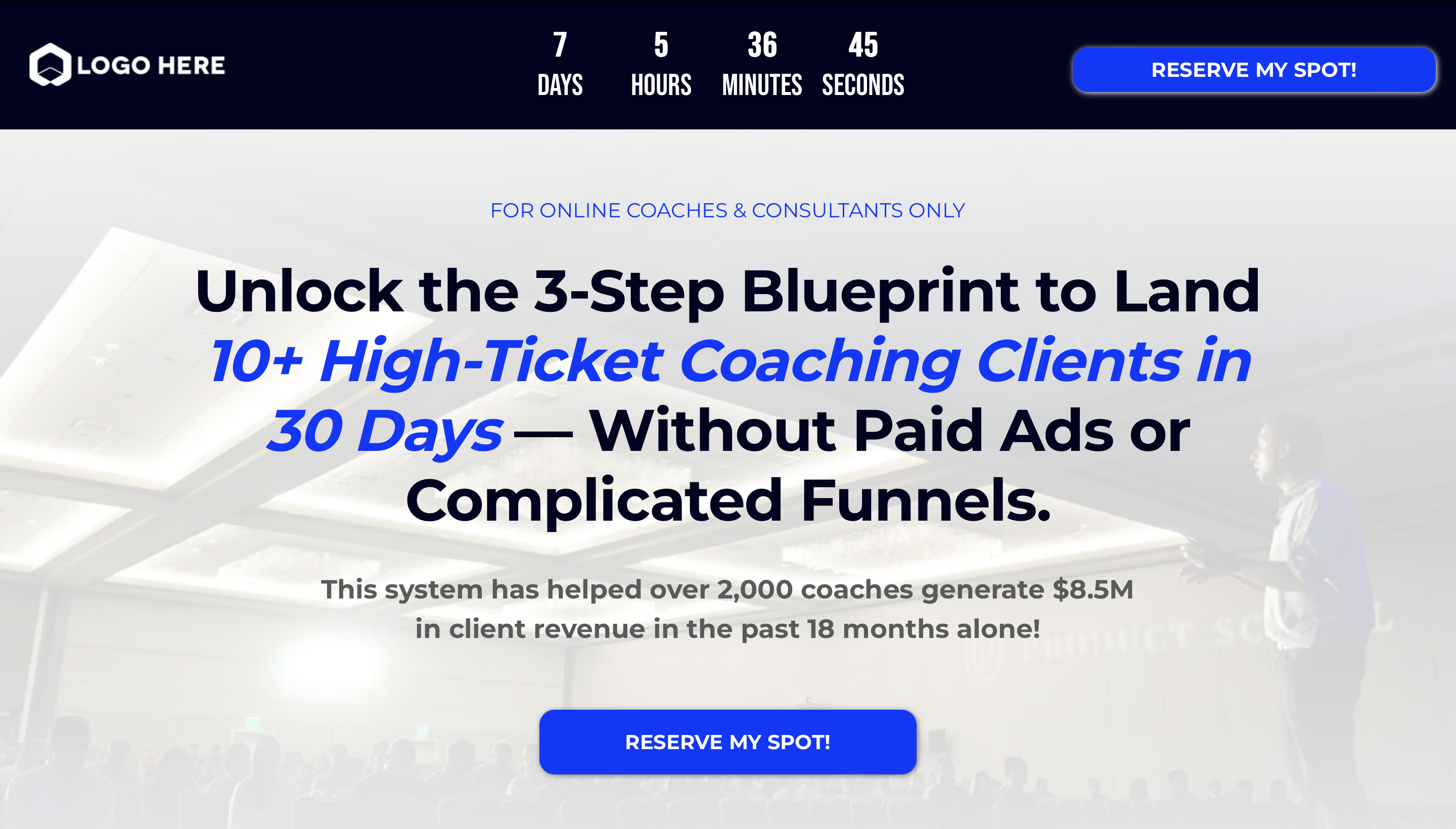 A high-converting registration page increases attendance, putting your high-ticket offer in front of more buyers.